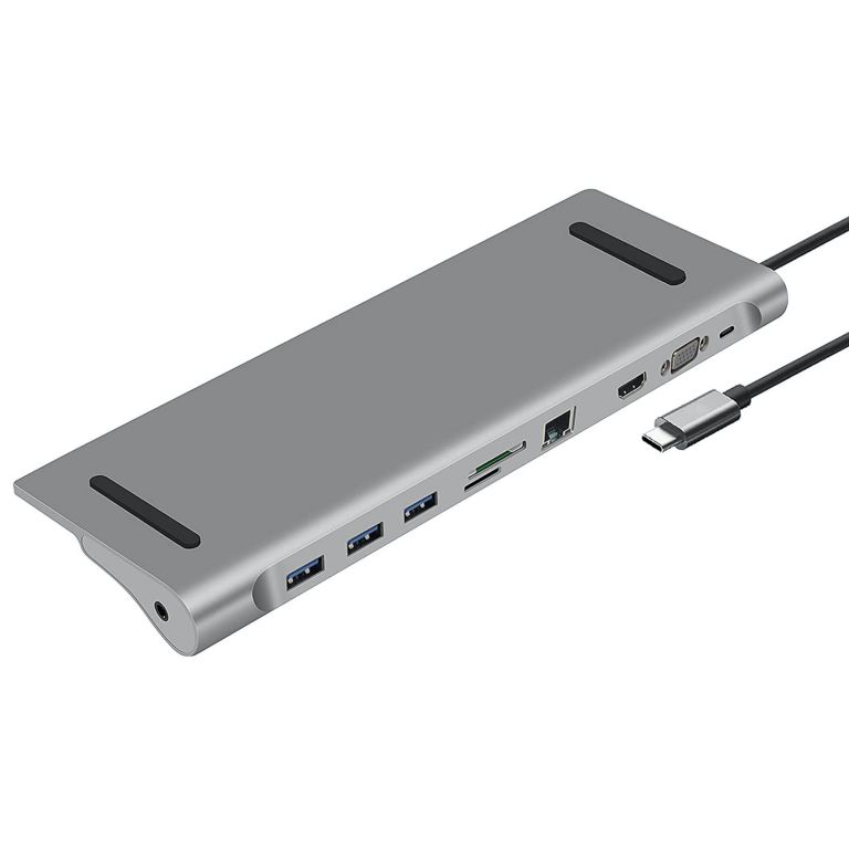 Ce Hub équipé de 10 ports : 3x USB 3.0, HDMI, RJ45, VGA, Lecteur de cartes SD/micro SD, Jack 3.5mm et USB-C permet d'ajouter des ports non existants à son ordinateur ou d'augmenter le nombre de ports disponible. Il permet de transférer des données, de diffuser des vidéos sur une TV, un projecteur ou un moniteur, de se connecter à internet, de recharger ses appareils multimédia (Smartphone, Tablette..) ou de lire des cartes mémoires.