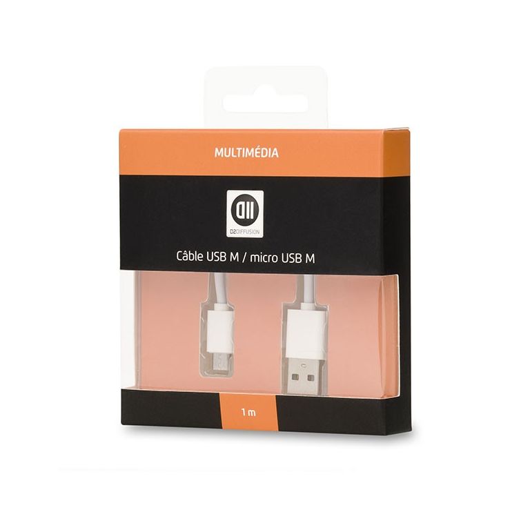 D2 Diffusion D2MICROUSB100B. Longueur de câble: 1 m. Connecteur 1: USB A, Connecteur 2: Micro-USB A, Version USB: USB 2.0, Couleur du produit: Blanc