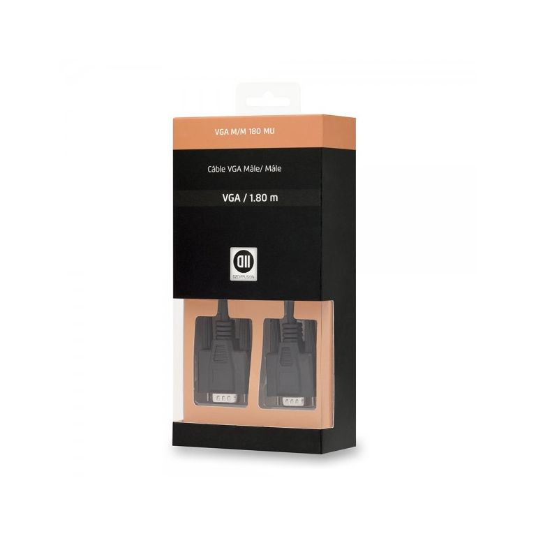 D2 Diffusion D2VGA180MU. Longueur de câble: 1,8 m, Connecteur 1: VGA (D-Sub), Connecteur 2: VGA (D-Sub)