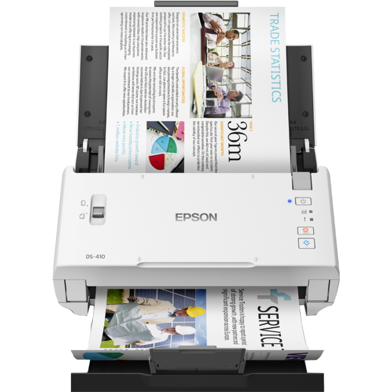 Epson WorkForce DS-410. Surface maximal de numérisation: 215,9 x 3048 mm, Résolution de numérisation optique: 600 x 600 DPI, Profondeur d'affichage d'entrée de couleur: 48 bit. Type de scanner: Alimentation feuille à feuille de scanner, Couleur du produit: Noir, Blanc. Type de capteur: CIS, Cycle de fonctionnement par jour (max): 3000 pages, Formats des fichiers numérisés: BMP, JPG, PDF, PNG, TIFF. Capacité d'entrée standard: 50 feuilles, Capacité du chargeur automatique de documents: 50 feuilles. Taille de papier de série A ISO maximum: A4, Prise en charge des types de numérisation de support: Carte de visite, Carte postale (JPN), ISO, Format Series A (A0...A9): A4, A5, A6