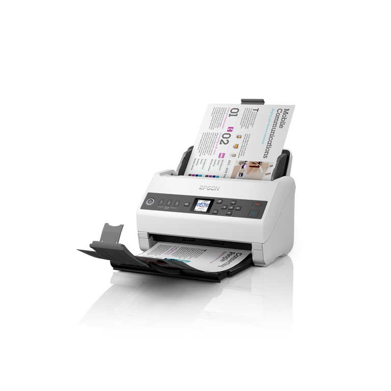 Epson WorkForce DS-730N. Surface maximal de numérisation: 215,9 x 6096 mm, Résolution de numérisation optique: 600 x 600 DPI, Profondeur d'affichage d'entrée de couleur: 30 bit. Type de scanner: Alimentation feuille à feuille de scanner, Couleur du produit: Noir, Gris, Écran: LCD. Type de capteur: CIS, Cycle de fonctionnement par jour (max): 4500 pages, Source lumineuse: ReadyScan LED. Capacité du chargeur automatique de documents: 100 feuilles. Taille de papier de série A ISO maximum: A4, Prise en charge des types de numérisation de support: Carte de visite, Papier plastifié, Carte postale (JPN), ISO, Format Series A (A0...A9): A4, A5, A6