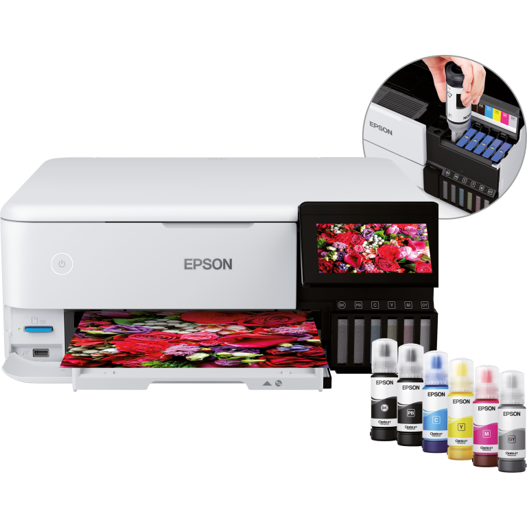 Epson EcoTank ET-8500. Technologie d'impression: Jet d'encre, Impression: Impression couleur, Résolution maximale: 5760 x 1440 DPI, Vitesse d'impression (couleur, qualité normale, A4/US Letter): 32 ppm. Numérisation: Numérisation couleur, Résolution de numérisation optique: 1200 x 4800 DPI. Fonctions recto verso: Impression. Taille de papier de série A ISO maximum: A4. Wifi. Impression directe. Couleur du produit: Blanc