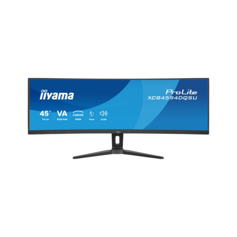 iiyama ProLite XCB4594DQSU-B1. Taille de l'écran: 113 cm (44.5"), Résolution de l'écran: 5120 x 1440 pixels, Type HD: Dual QHD, Technologie d'affichage: LED, Surface d'affichage: Mat, Temps de réponse: 2 ms, Format d'image: 32:9, Angle de vision horizontal: 178°, Angle de vision vertical: 178°. Haut-parleurs intégrés. Concentrateur USB intégré, Version du concentrateur USB: 3.2 Gen 1 (3.1 Gen 1). Montage VESA, Réglage de la hauteur. Couleur du produit: Noir