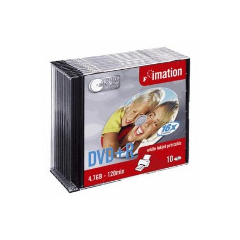 Imation DVD+R 16x 4.7Gb (10). Capacité d'origine: 4,7 Go, Type: DVD+R, Quantité: 10 pièce(s). Type d'emballage: Petit boitier. Produits par palette: 800 pièce(s). Vitesse d'écriture des DVD: 16x
