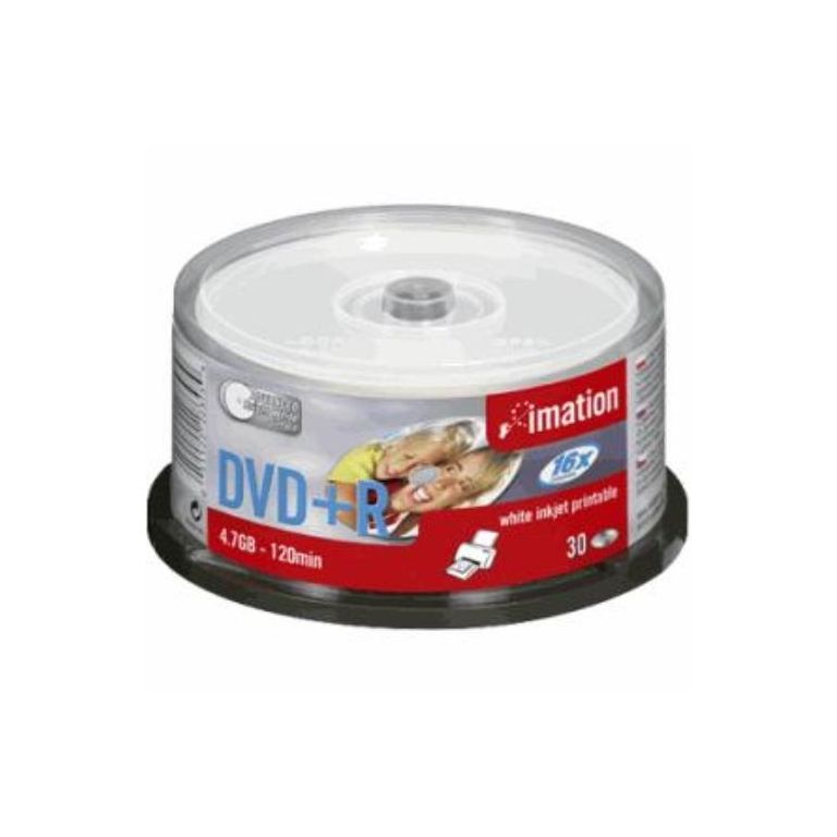 Imation DVD+R 16x 4.7Gb (30). Capacité d'origine: 4,7 Go, Type: DVD+R, Quantité: 30 pièce(s). Type d'emballage: Fuseau. Produits par palette: 640 pièce(s). Vitesse d'écriture des DVD: 16x