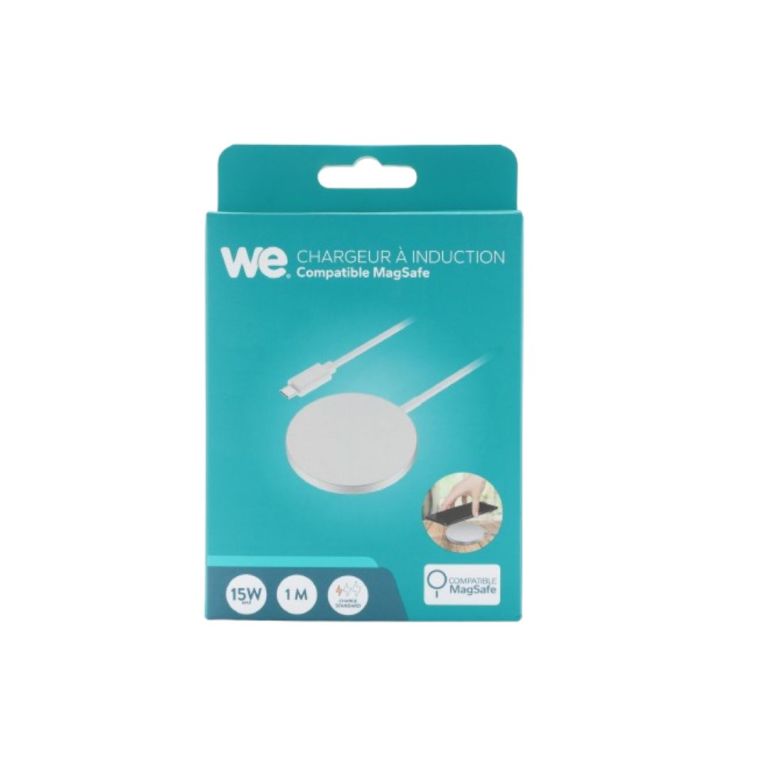 Simplifiez-vous la vie avec le chargeur WE sans fil pour recharger votre téléphone par induction. Il est compatible avec la technologie MagSafe et pourra maintenir votre iPhone compatible grâce à l’alignement parfait des aimants. Si votre téléphone ne bénéficie pas de la technologie MagSafe, vous pourrez l’utiliser simplement comme chargeur à induction sans fil classique.